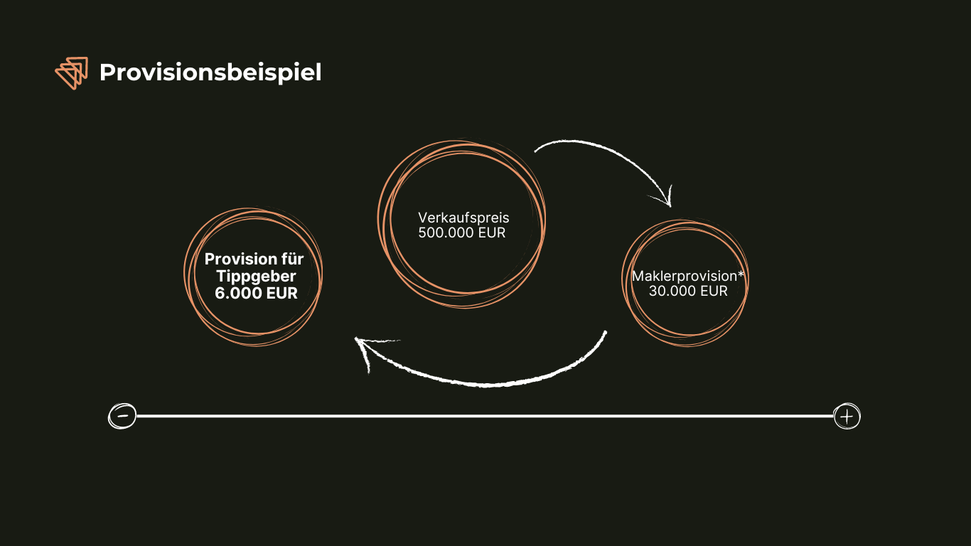 Kleemann Immobilien Konzept UG zahlt eine Tippgeberprovision in Höhe von 20% des Gesamt-Netto-Provisionsbetrages, nach Eingang der Maklerprovision für eine durch Sie vermittelte Immobilie. Mitunter kann diese mehrere tausende bis zehntausende Euro betragen – je nach Objektvolumen. Ein Beispiel zur Orientierung finden Sie weiter oben auf dieser Seite.